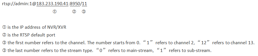| 若何利用RTSP流查抄收集IP摄像机? 若是收集摄像机撑持RTSP流,则其地点以下所示: rtsp://user name:password@ip address:rtsp prot/0 main stream rtsp://user name:password@ip address:rtsp prot/1 sub stream rtsp://user name:password@ip address:rtsp prot/2 third stream 比方: rtsp://admin:admin@192.168.1.90:554/1 从上面的地点你能够获得, 登录的用户名是admin 登录的暗码是admin RTSP端口默许设置是554 |