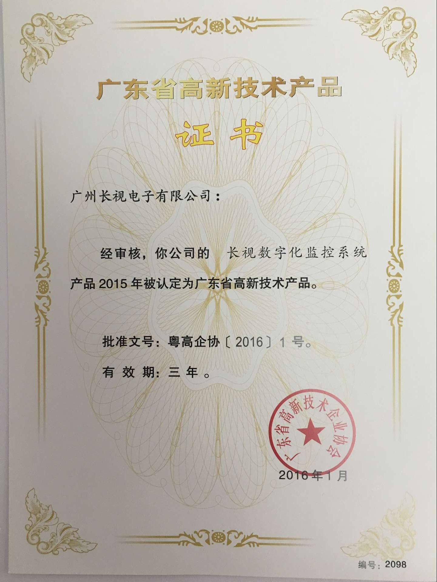 3.“长视数据化视频监控模式”被认定书为四川省高新技术学手艺生成物