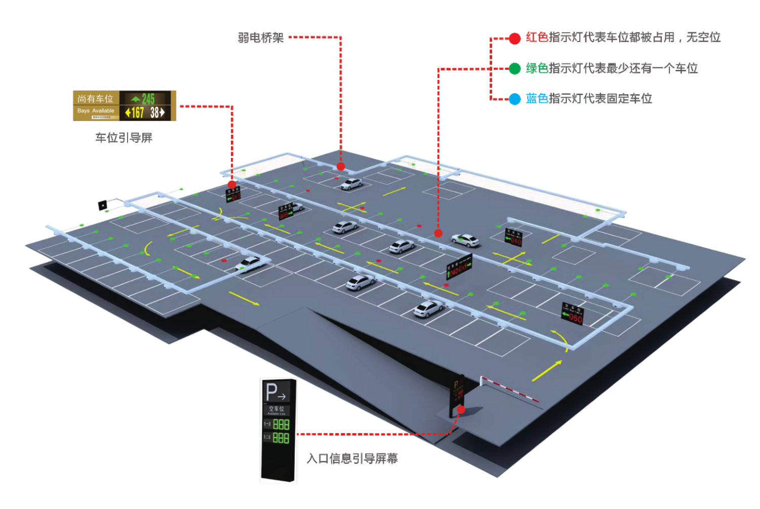 车位唆使灯差别的色彩,代表差别的寄义。